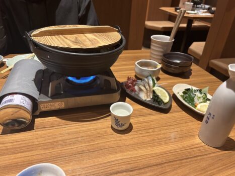 こんばんは!相田です! 近頃、本格的に寒くなってきましたね。冬の訪れをヒシヒシと感じております。 ある日の営業終わり、あったかいものが食べたいなと思いまして、 当店副店長の高野と鍋を食べに行ってまいりました。 どうしても熱燗が飲